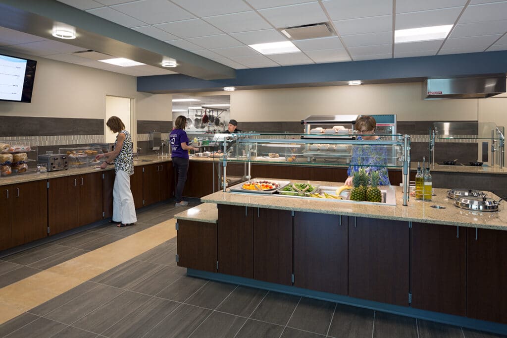 Open to the public, located on the west end of the hospital